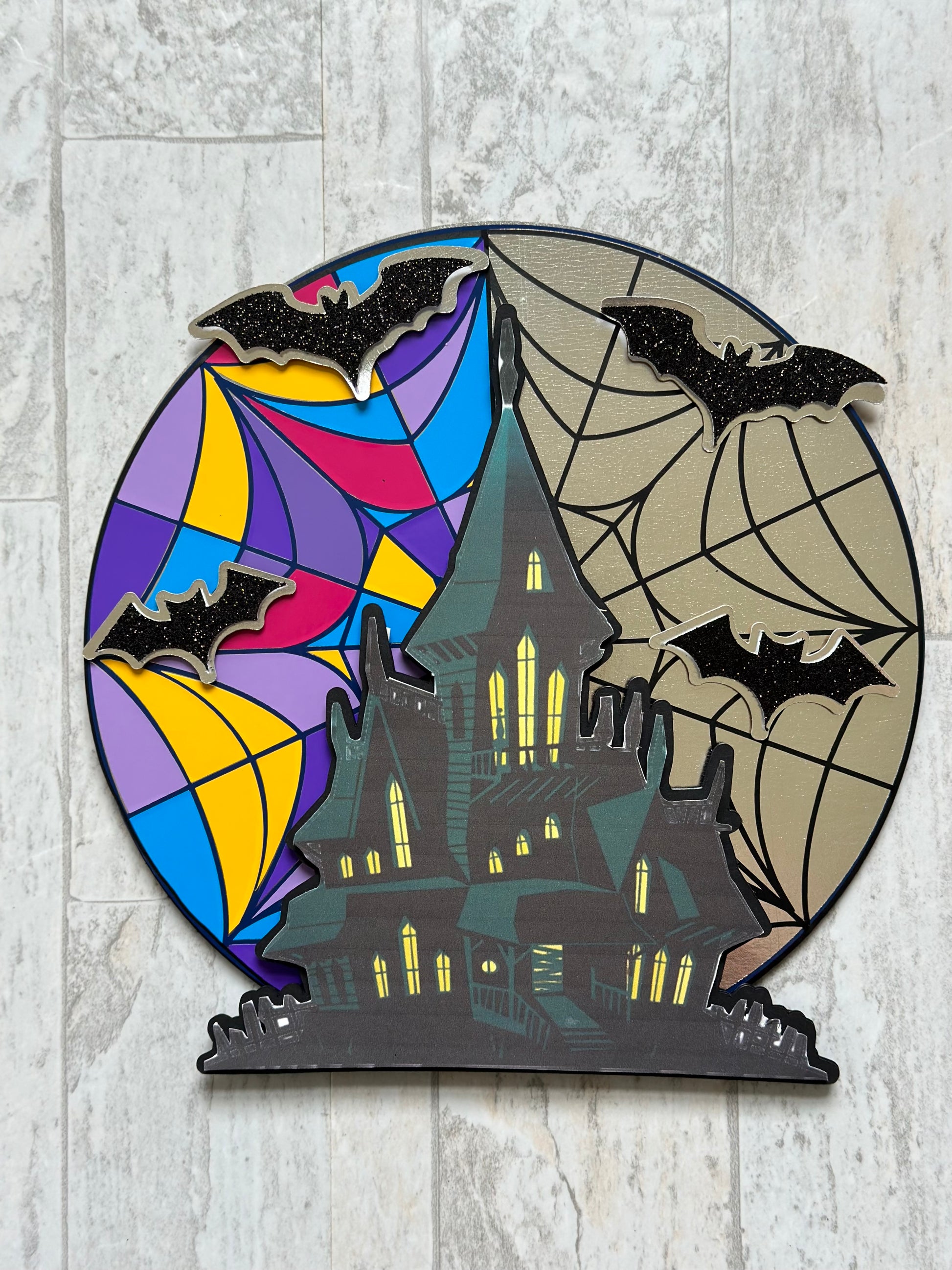 Includes a multi-layered piece with various colors and images to fit the theme provided.