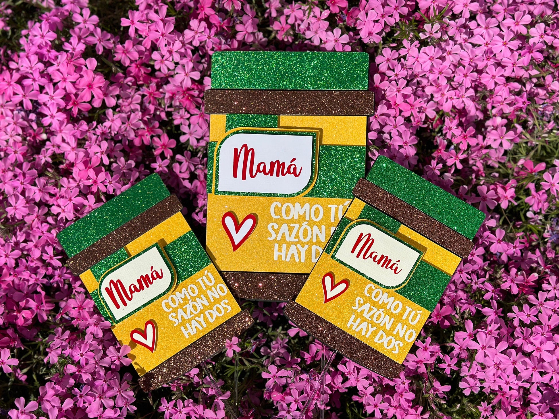 "Mamá como tú sazón no hay dos" Sazón inspired Glitter Cake Topper. Can be used on many items such as a cake topper, a favor in a flower bouquet, etc.